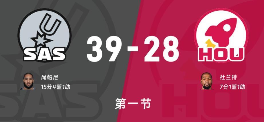 热身阶段火箭主场篮筐歪了耽误了半小时,文班亚马跳得首次进攻球权,文班直接对位申京,阿门对位福克斯,杜兰特对位巴恩斯!卡斯尔三分不中,奥科吉失误,巴恩斯翻身跳投不中,阿门空接暴扣,巴恩斯三分回应3-2开局!申京怼翻文班上篮得手,尚帕尼三分有了,奥科吉前场篮板2+1加罚不中,申京内线又打成文班一球,卡斯尔三分再中马刺开场三分不错,回过来史密斯外线也能回应,文班自投自抢造成杜兰特犯规,两罚全中比分11平!中段场面依旧胶灼,火箭这边自己进攻打得不错,但是完全防不住马刺三分,6分20秒马刺已经投中4个三分,奥科吉点起卡斯尔造成犯规进入官方暂停。回来两罚不中,尚帕尼外线三分还有19-15外线放太空了,好在杜兰特外线能回应上,尚帕尼外线造成犯规三罚全中+三分27-22领先,节末福克斯爆发带队打了一波12-6,首节火箭28-39落后!